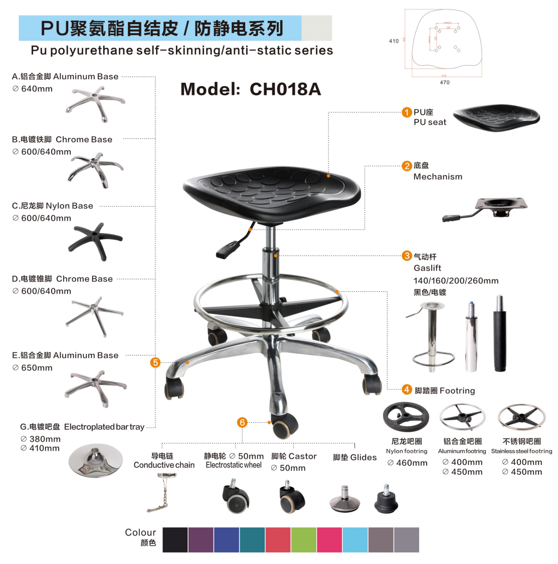 Customization Options: Color, caster type, foot ring, armrests